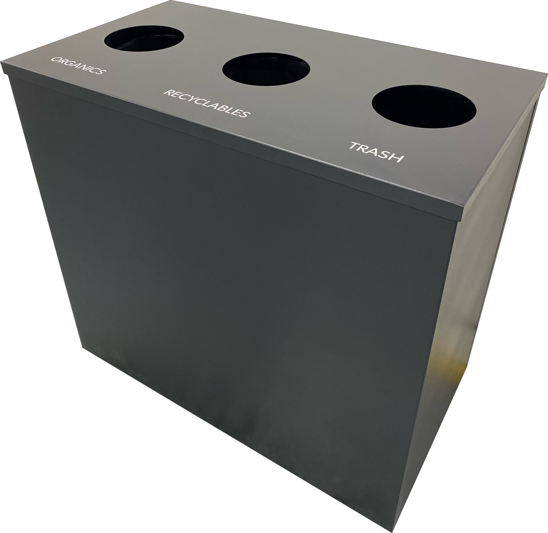 Easily configured into a 2 or 3 stream bin for either indoor or outdoor applications