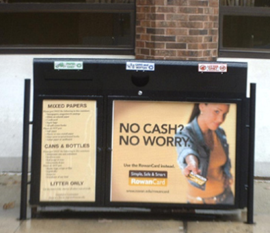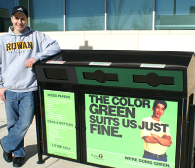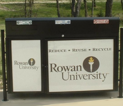 John Imperatore was impressed with how closely Envyrozone worked with Rowan University to accommodate its needs. To solve the problem of uncertain waste requirements at the recycling facility Envyrozone decided to employ a two stream painted steel model with redesigned portals so that trash could be redirected, or the openings could be restricted. The durability and water resistance of the steel model also impressed his staff. As an added bonus, the unit proved resistant to animals that normally would be drawn to disturb the contents of standard waste receptacles. Envyrozone designed the unit so the door would open to the side, swinging out of the way for easy access to the internal bins. This allowed the bins to be pulled out rather than lifted out, easing the lifting requirements of the University’s maintenance staff. The front panels of the receptacles were used to advertise the campus’ “One Card” campaign, another innovation on the Rowan University Campus that allows students to use one card for all their on-campus interactions. All 31 units deployed on campus also display the Rowan University logo. Imperatore is pleased that these units not only save money on landfill fees but also announce to the student body that Rowan University is invested in the future of renewable resources.