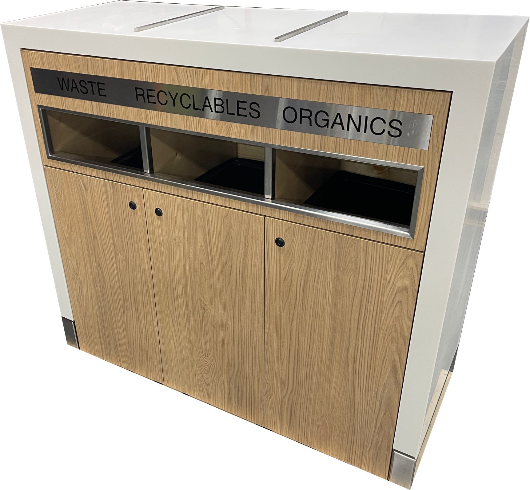 Easily configured into a 2 or 3 stream bin for either indoor or outdoor applications